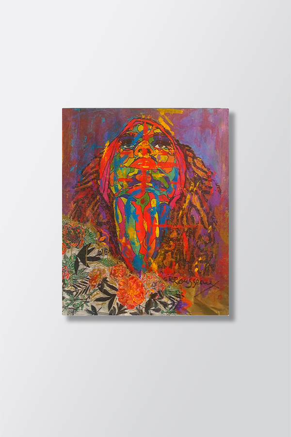 Reginald Rousseau is a Haiti-born and Harlem-raised contemporary folkloric artist, best known for his “Tropical Aesthetics” series, which encompasses paintings,mixed-media assemblages and digital illustrations. He describes his work as a layering of Haitian naive art, African textile, stainedglass and abstraction. The focal point of Rousseau’s work is to articulate, frame and illuminate the richnessand complexity of Black identity, life, culture and spirituality from a unique point of view encompassing his African roots, Haitian heritage and my life experiences growingin Harlem, New York.”