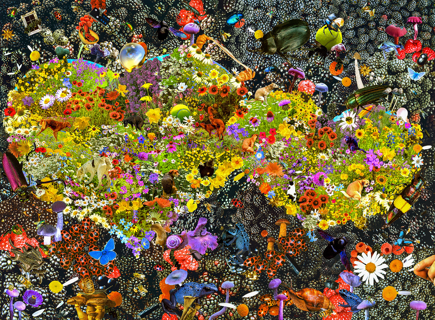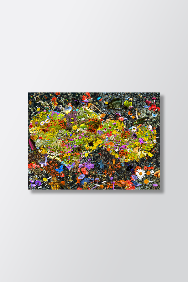 These limited-edition prints are exact replicas of the original cut-and-paste collages, made of book, magazine, holographic & giclée clippings. The collages reflect the beauty of nature and the power of love.