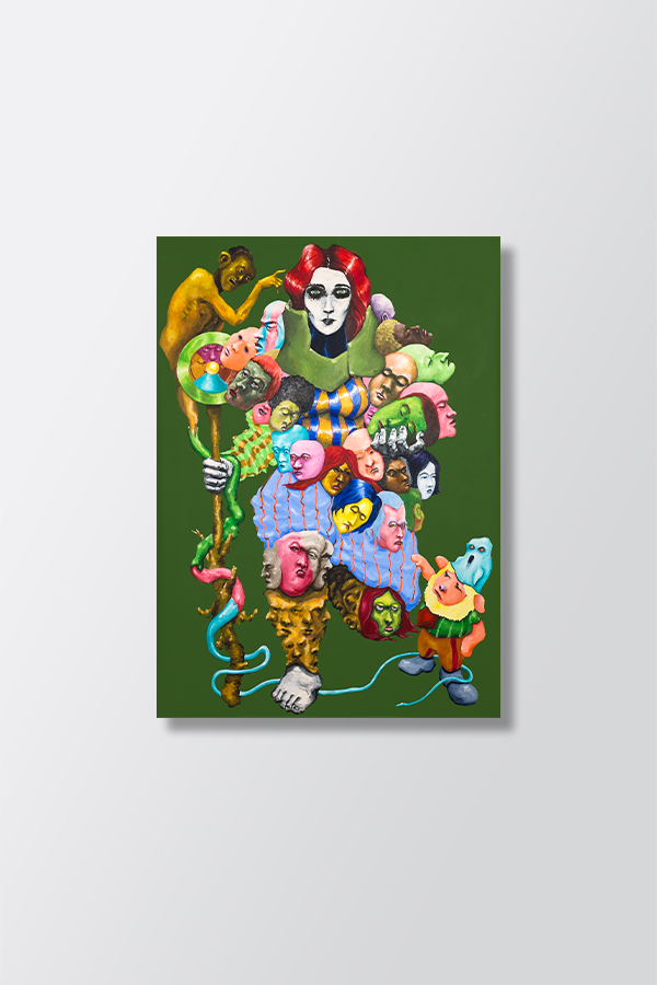 These works are part of my series of mostly large scale paintings called “Psychopomps, gods and arcana”. These are a series of acrylic paintings depicting neo-pagan gods that are concocted from personal, unconscious symbolism. To access this subconscious well, I incorporate chance-based techniques into the design, such as automatic drawing and a randomized system of coloration, determined with dice rolls.